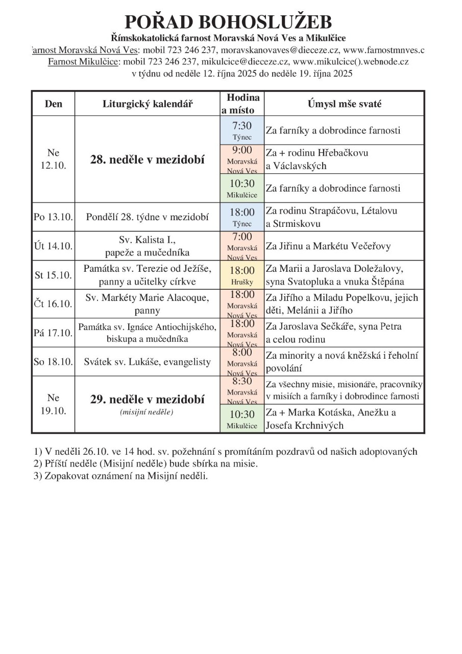 Kdo by se chtěl jakkoli zapojit, můžete se obrátit na Moniku Dvořáčkovou z Moravské Nové Vsi (tel. 702828648). Ti z vás, kteří by chtěli přispět svými výtvory, které se budou prodávat na Misijním jarmarku, můžete je přinést v sobotu 18.10. v 18:30 do farního kostela. Šikovné maminky a babičky můžou po domluvě s Jindřiškou Fojtíkovou upéct něco dobrého ke kafíčku do Farní kavárny. Těším se, že se zapojíte v hojném počtu a poté si užijeme strávený čas s Pánem Ježíšem i ve společenství naší farnosti.