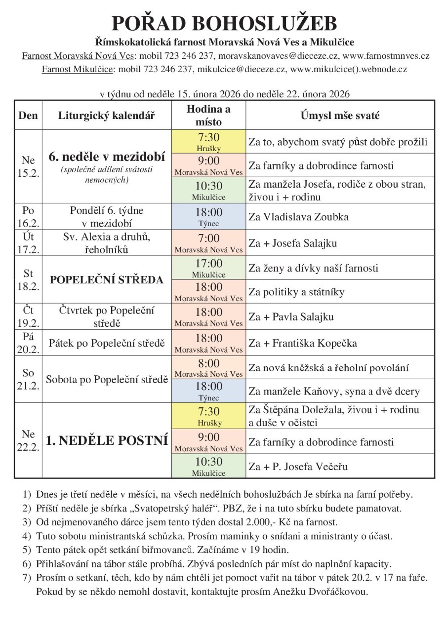 Tuto sobotu ministrantská schůzka. Prosím maminky o snídani a ministranty o účast.