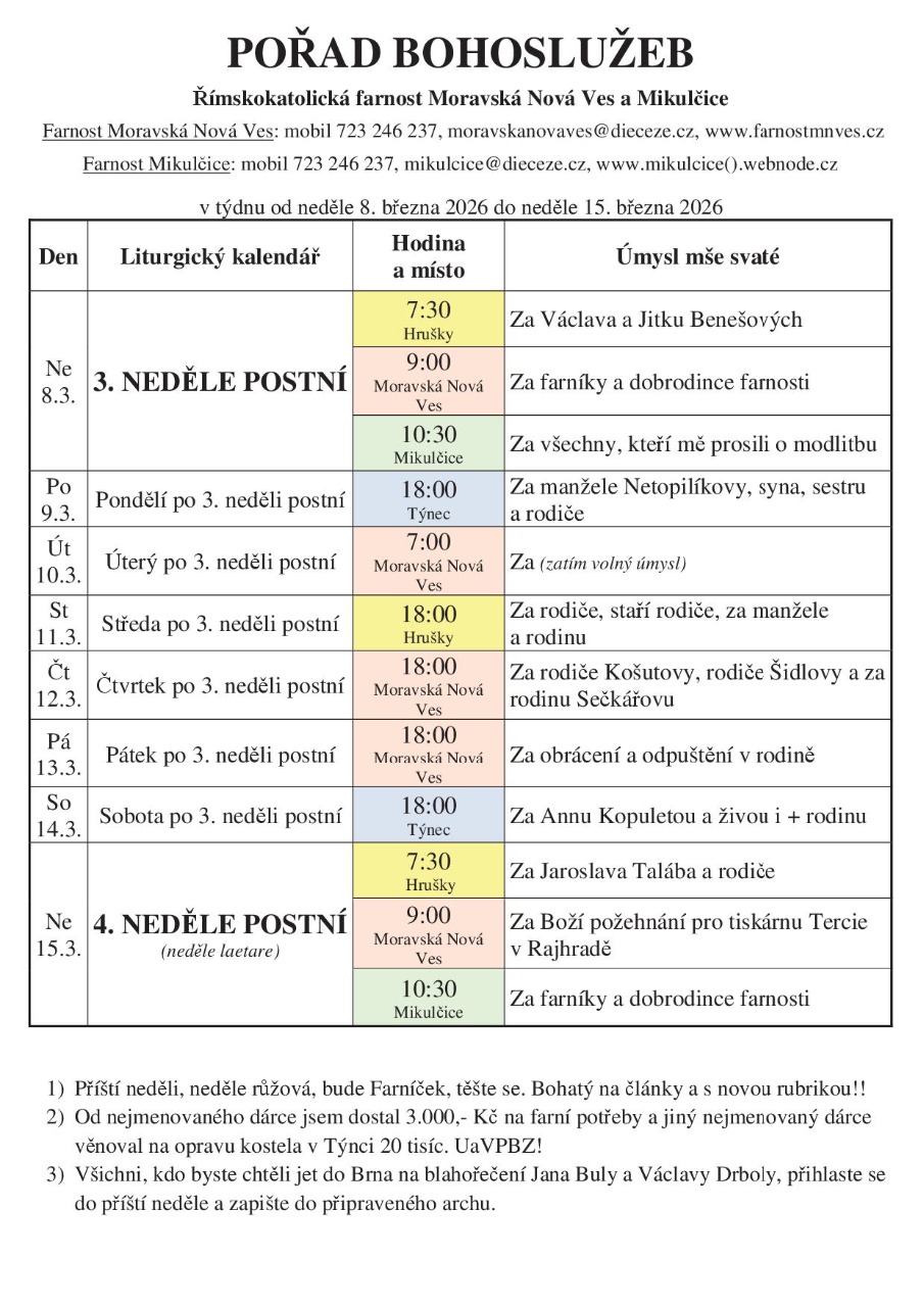 Všichni, kdo byste chtěli jet do Brna na blahořečení Jana Buly a Václavy Drboly, přihlaste se do příští neděle a zapište do připraveného archu.